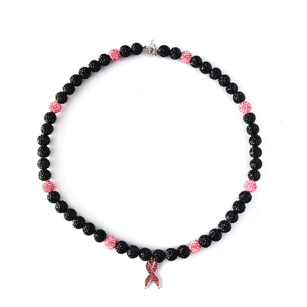 Breast Cancer Awareness Baseball Drip Necklace Rhinestone Bead Necklace Ice Collection Bling Necklace Black Pink